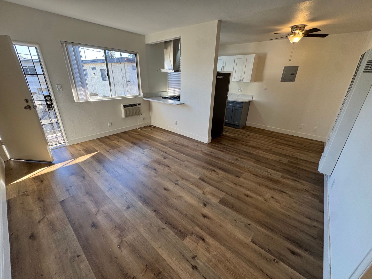 Welcome to your new home in Van Nuys, CA! This top-floor, one-bedroom, one-bathroom apartment offers a comfortable and stylish living space. The full kitchen comes equipped with a stove, refrigerator, and dishwasher, making meal prep a breeze. The vinyl plank flooring adds a touch of elegance and is easy to maintain. The apartment also features a ceiling fan and wall AC, ensuring you stay cool during those warm California days. Plus, with on-site parking, you'll never have to worry about finding a spot. Experience the convenience and comfort of this apartment today!