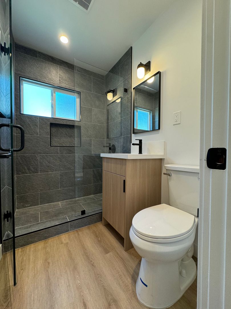 Welcome to our modern ground floor 1-bedroom, 1-bathroom apartment located in the heart of Atwater Village. This home features a fully kitchen equipped with a dishwasher, microwave, stove, and stainless steel sink with pull-down faucet and garbage disposal for your convenience. The building has on-site laundry equipped with PayRange coinless payment processing. Stay comfortable year-round with air conditioning, bedroom ceiling fan and a gas furnace. Enjoy luxury vinyl plank flooring, vinyl windows, mini-blinds, dimmable recessed lighting, and a built-in desk perfect for working from home. The bathroom boasts a walk-in shower with frameless glass door for added luxury. With keyless entry for ease of access and on-site reserved parking this apartment has everything you need for a comfortable and convenient living experience.